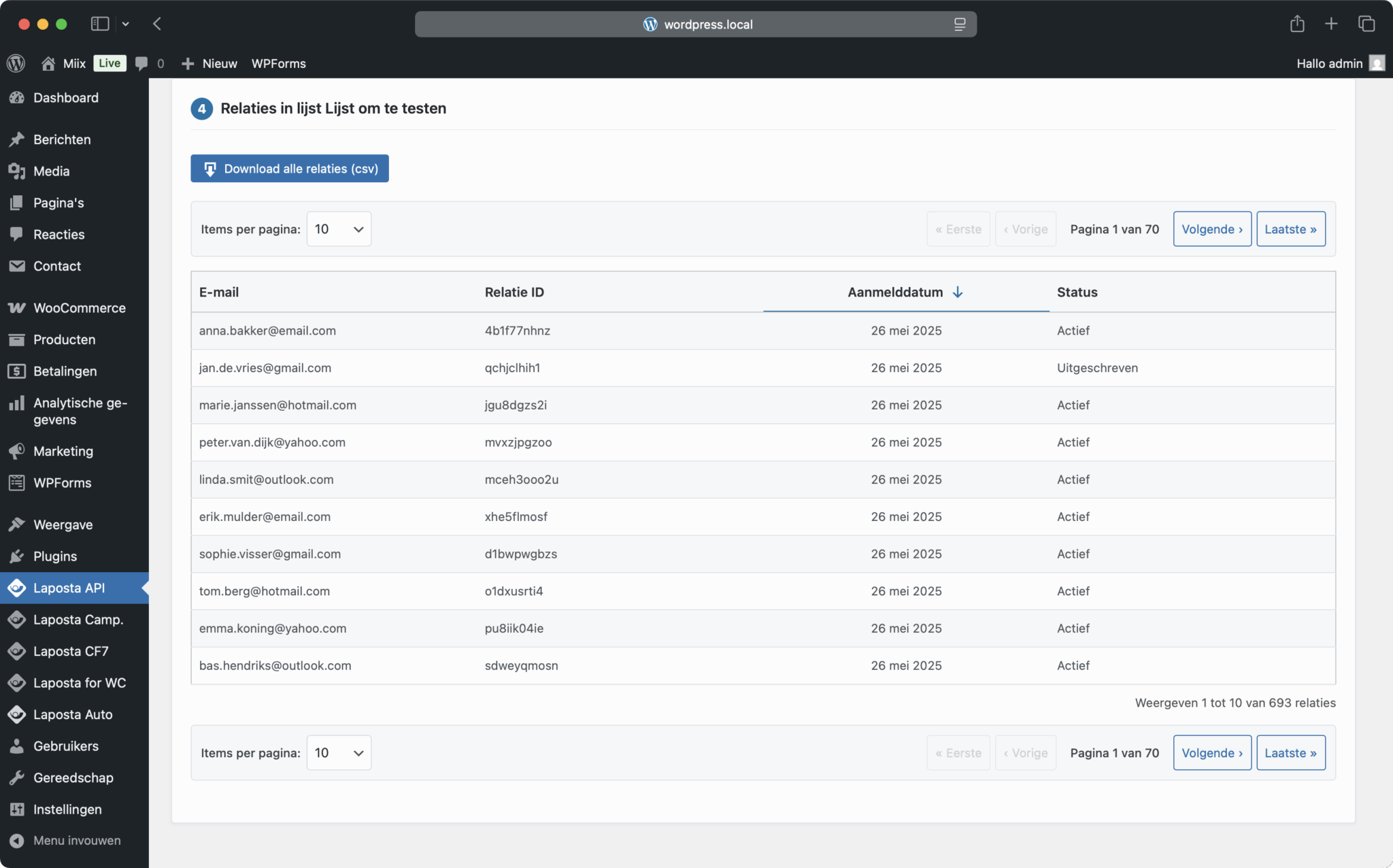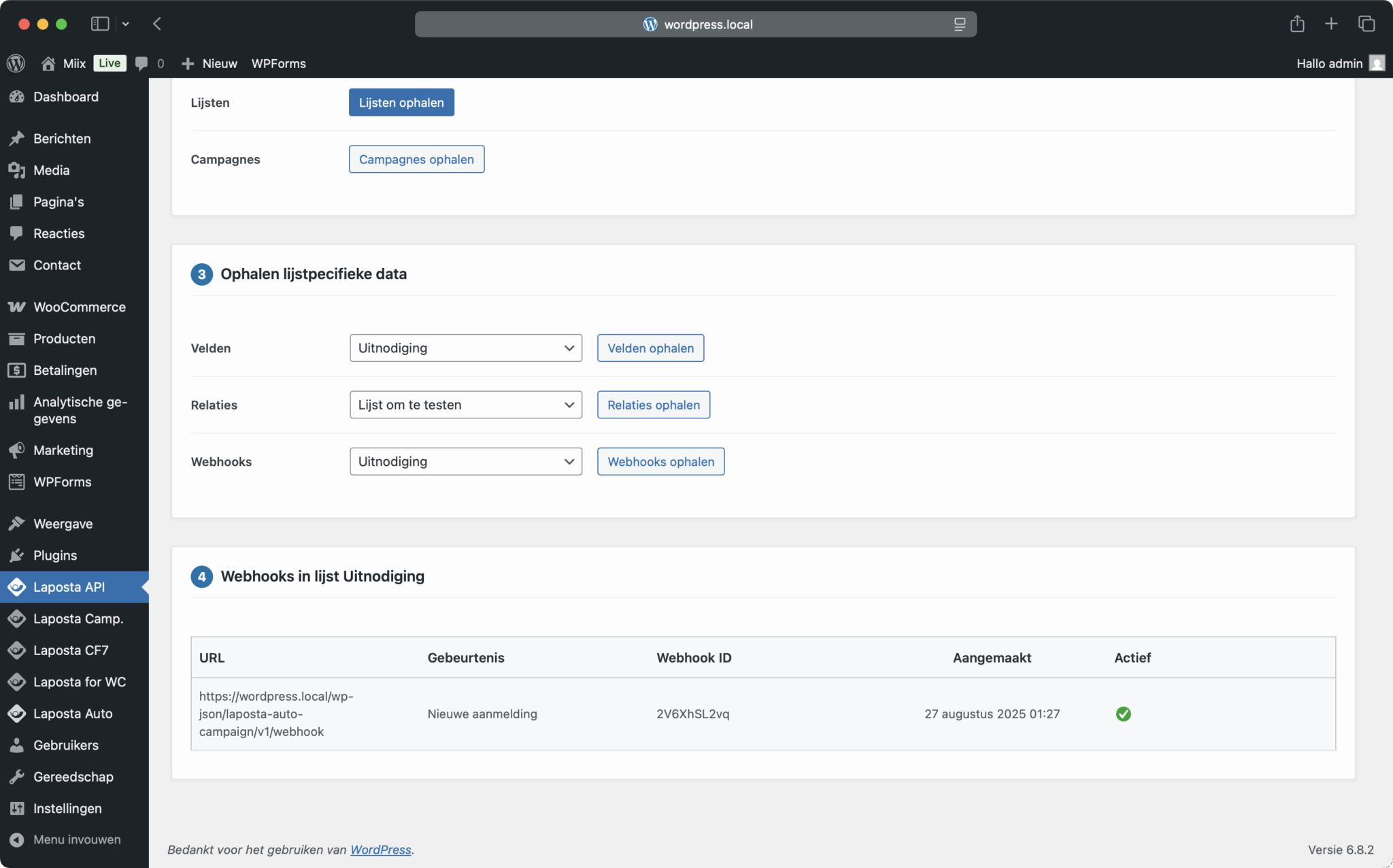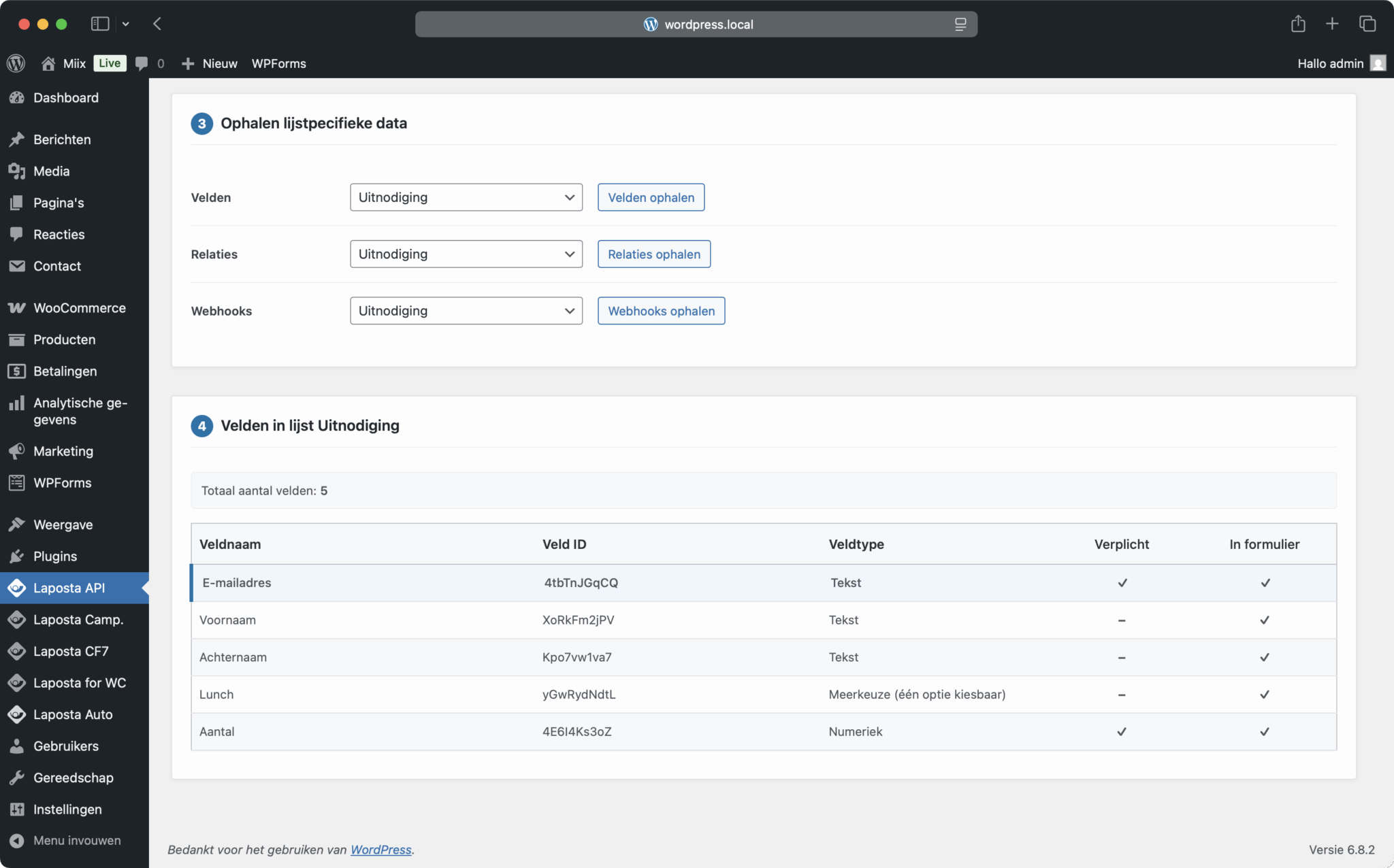 - Vereist door Laposta for WooCommerce, Laposta Campaigns, Laposta Auto Campaign, Laposta CF7 en Laposta for WPForms