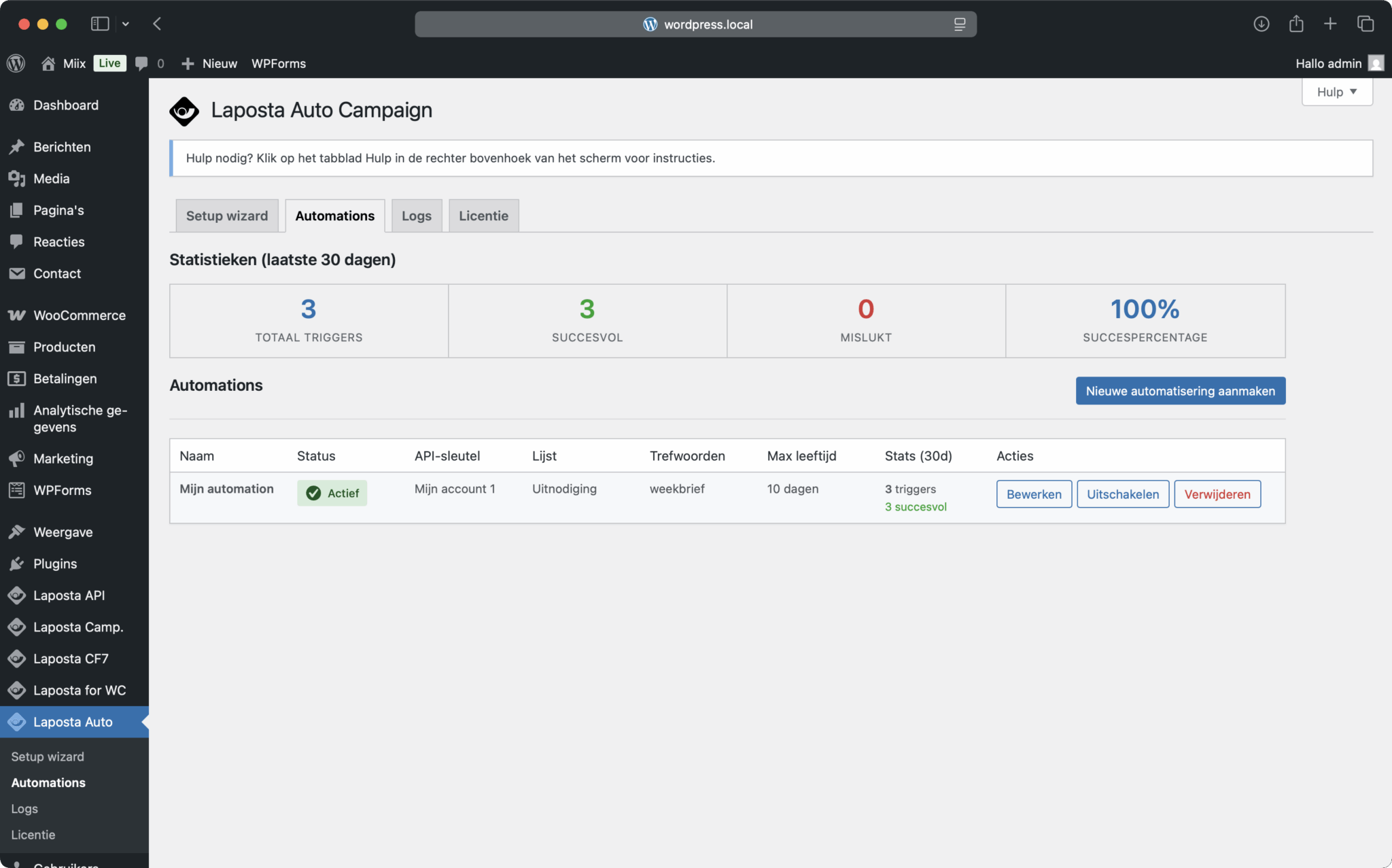 Laposta Auto Campaign maakt gebruik van mijn (gratis) Laposta API plugin. Lees meer.
