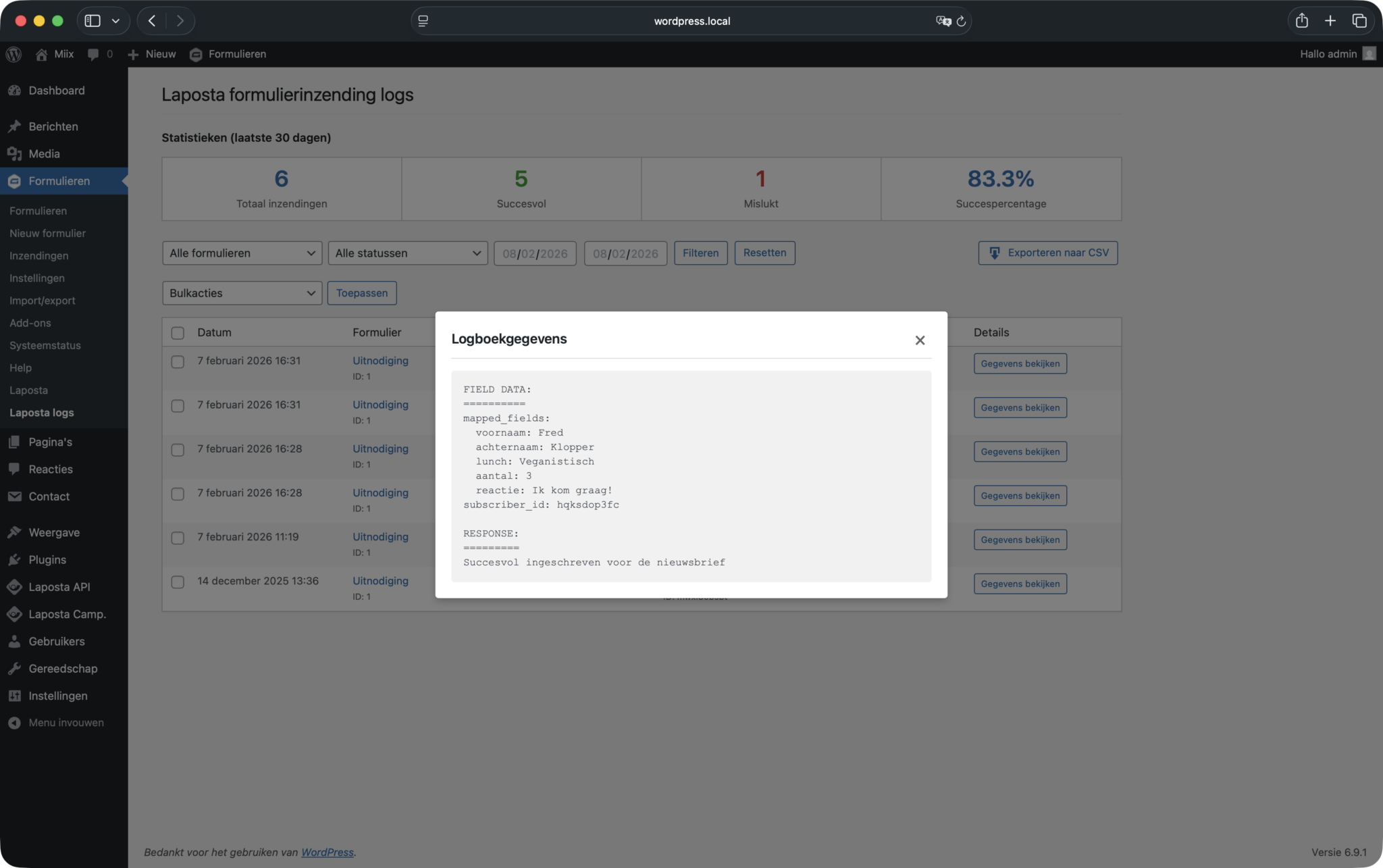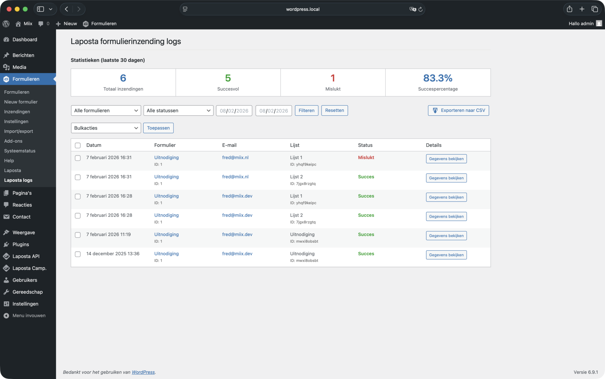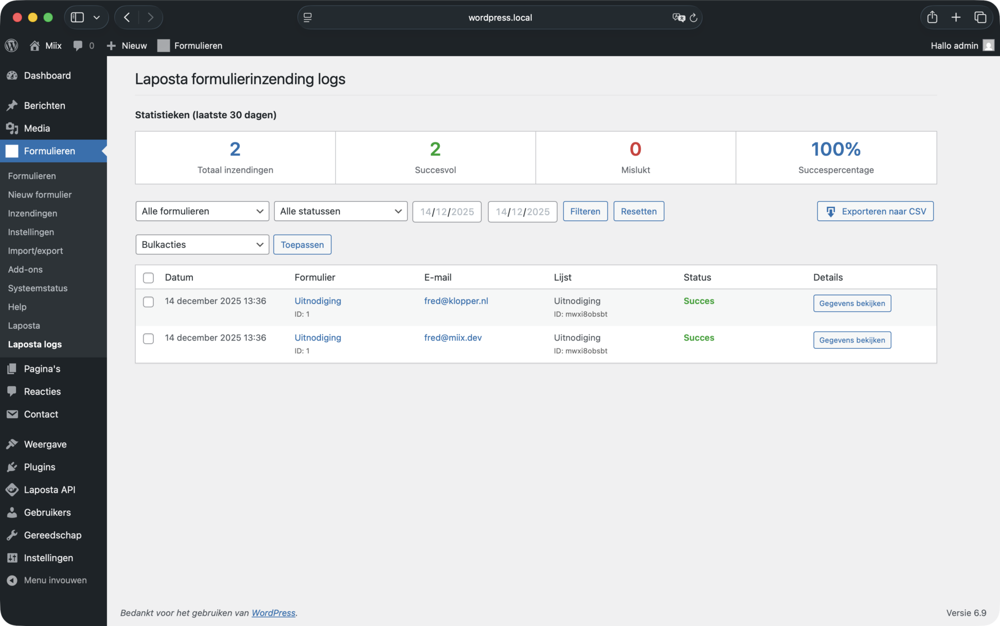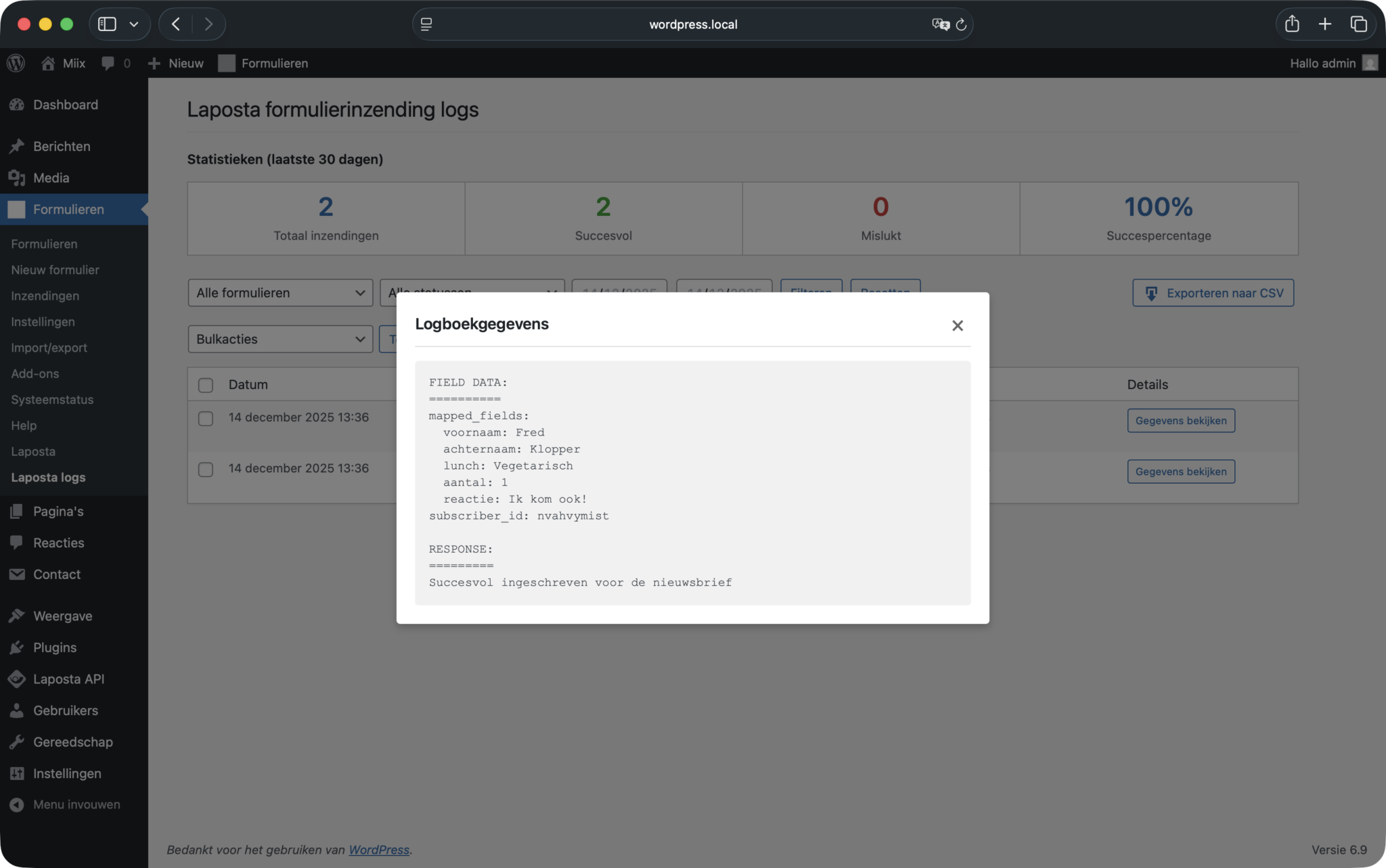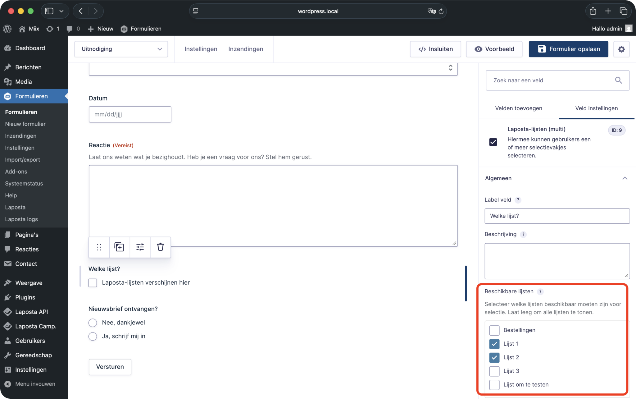 - Ondersteuning voor een onbeperkt aantal Laposta-lijsten