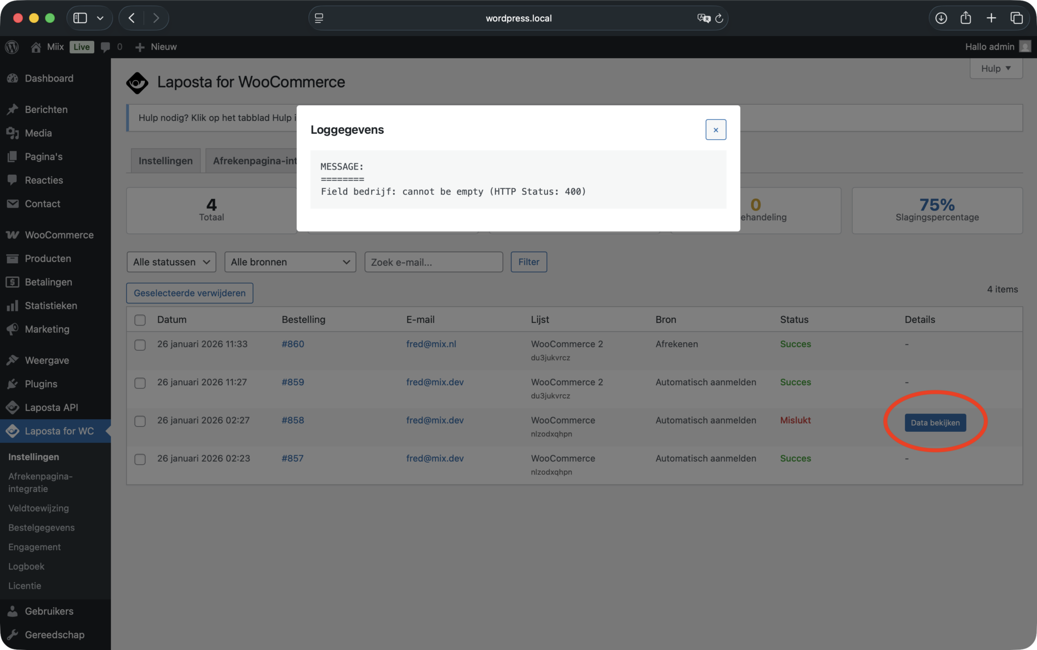 Live- In één klik een nieuwe Laposta-lijst aanmaken, inclusief alle beschikbare WooCommerce-velden