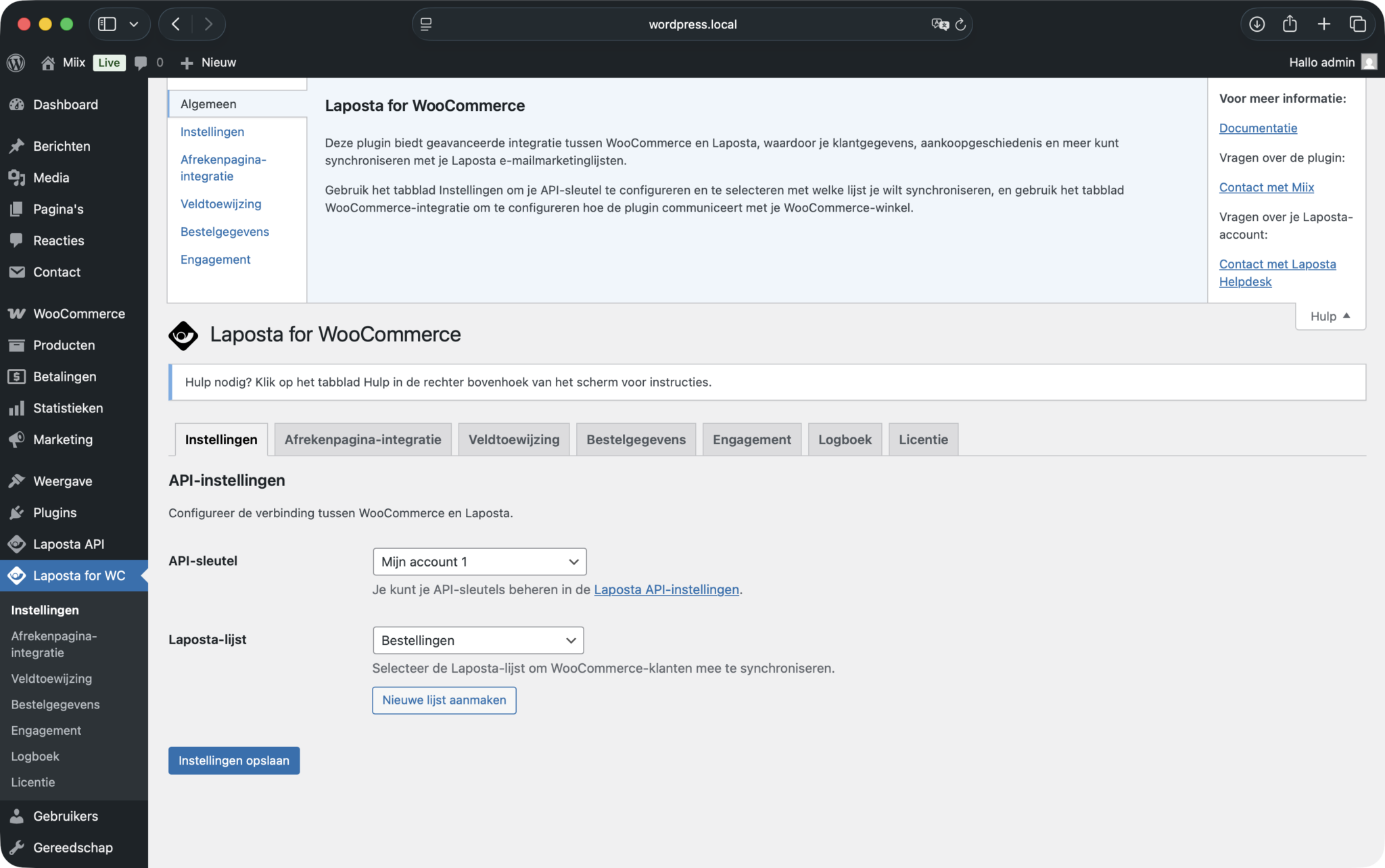 - Maak met één klik een nieuwe Laposta-lijst aan, inclusief alle beschikbare WooCommerce-velden
