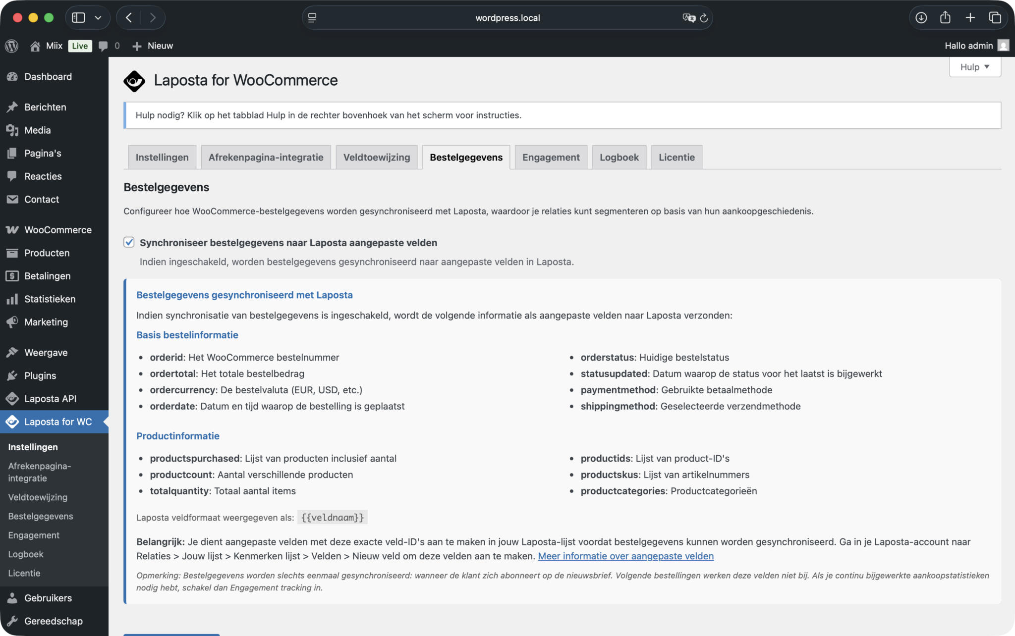 - Synchroniseer WooCommerce bestelgegevens met je Laposta-velden
