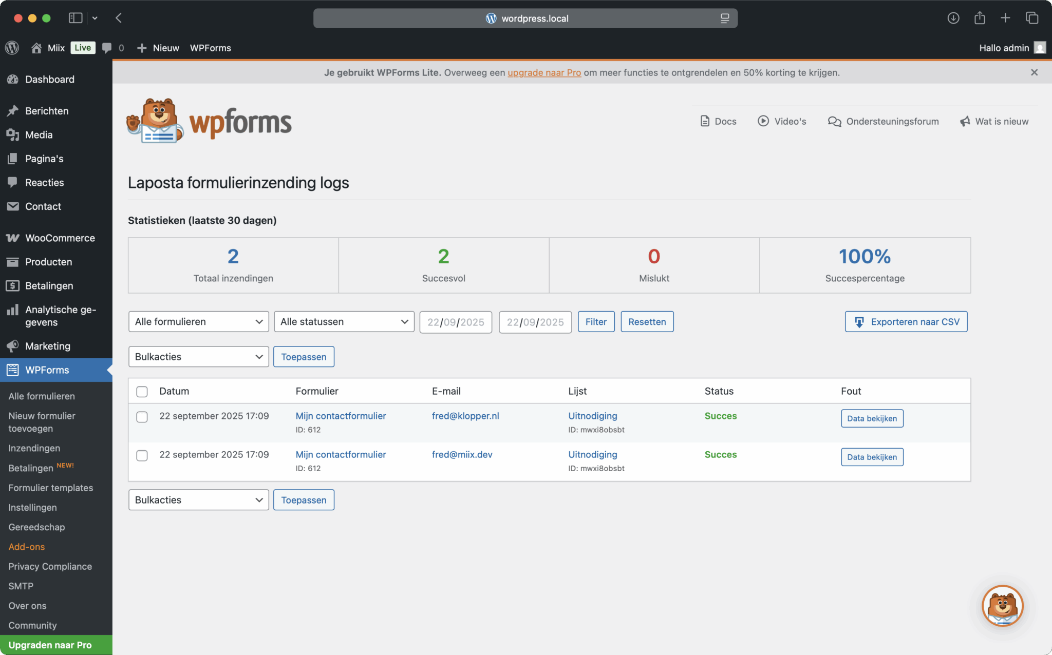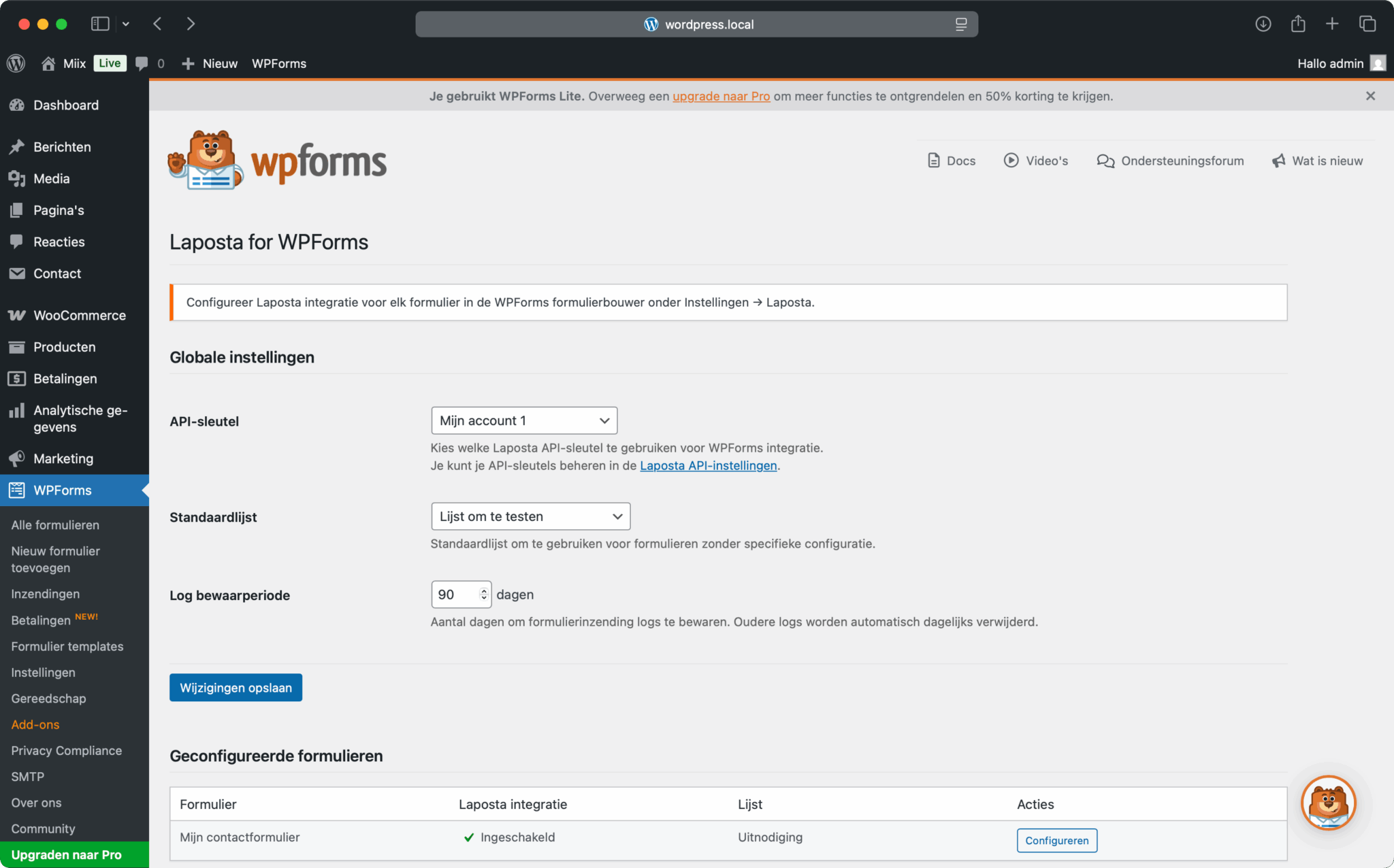 Laposta for WPForms maakt gebruik van mijn (gratis) Laposta API plugin. Lees meer.